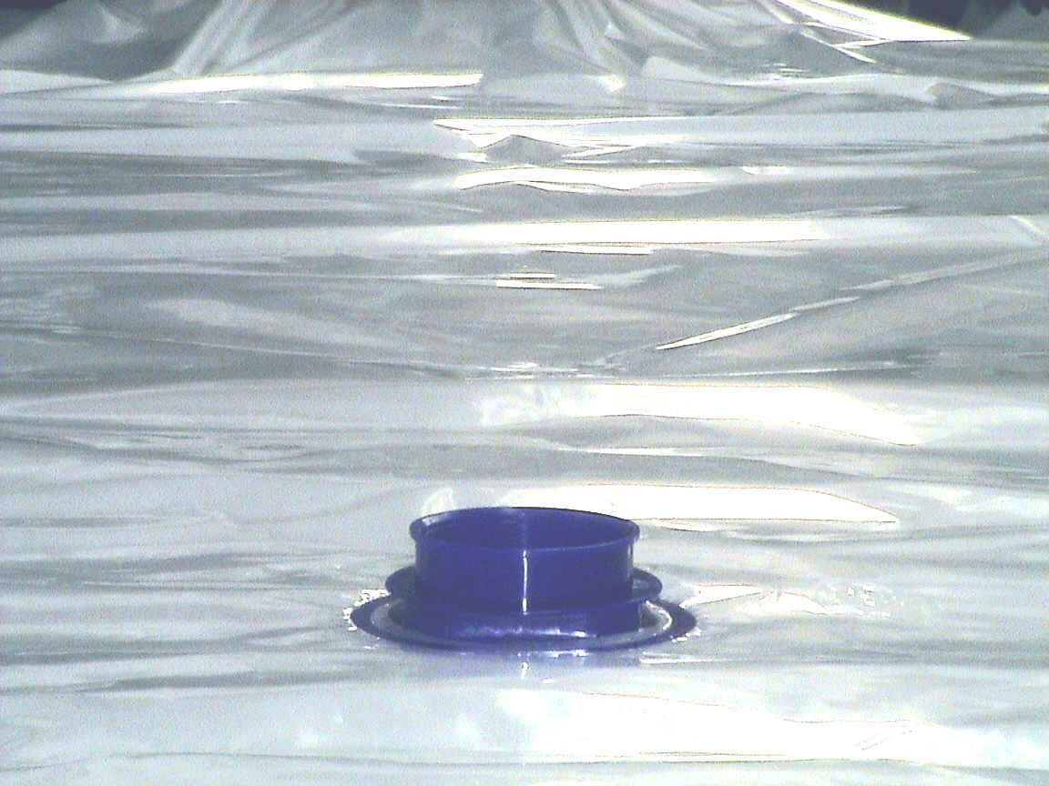 Bolsa para contenedor de 1,000 lt con boquillas de 3″ fabricada en polietileno de baja densidad.